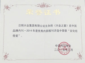 ·2015年3月,《興業(yè)之窗》在中國(guó)品牌內(nèi)刊2014年度優(yōu)秀內(nèi)部報(bào)刊評(píng)選中榮獲"文化紐帶獎(jiǎng)"