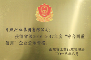 ·2018年8月,興業(yè)集團(tuán)獲得省級2016-2017年度守合同重信用企業(yè)