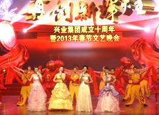“再創(chuàng)新輝煌”興業(yè)集團(tuán)2013年春節(jié)聯(lián)歡晚會歷時2個多小時,節(jié)目形式有歌舞、雜技、相聲、器樂、戲曲、情景朗誦等,內(nèi)容豐富,精彩紛呈;特別是央視著名主持人小尼和國家一級演員李玉剛等明星的加盟,讓整臺晚會無比璀璨;借助演播大廳極具現(xiàn)代化的舞美燈光效果驚艷四座,為我集團(tuán)成立十周年畫上濃墨重彩的一筆,充分展示了我集團(tuán)的企業(yè)實力,謳歌了興業(yè)人艱苦奮斗、團(tuán)結(jié)協(xié)作、拼搏進(jìn)取的創(chuàng)業(yè)精神和興業(yè)報國的高尚情懷,也為港城人民獻(xiàn)上了一場精彩、難忘、歡樂、美好的文化盛宴。 |