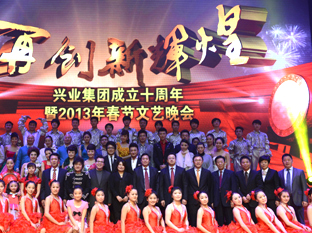 蛟龍昂首高歌去,金蛇迎春送福來,闊步奔騰開勝景,春風(fēng)浩蕩展宏圖。1月19日晚,“再創(chuàng)新輝煌”日照興業(yè)集團(tuán)成立十周年暨2013年春節(jié)文藝晚會在日照市會展中心盛裝上演。央視著名主持人尼格買提擔(dān)當(dāng)主持嘉賓,李玉剛、任靜、付笛生、王二妮、楊丞剛等明星聯(lián)袂助陣。我集團(tuán)領(lǐng)導(dǎo)班子和來自興業(yè)各條戰(zhàn)線上的職工代表1600余人歡聚一堂,載歌載舞,共享勝利的喜悅,歡慶新春佳節(jié)的到來。日照市金融界各大銀行行長、新聞媒體、業(yè)務(wù)合作伙伴的領(lǐng)導(dǎo)和嘉賓應(yīng)邀觀賞了晚會。